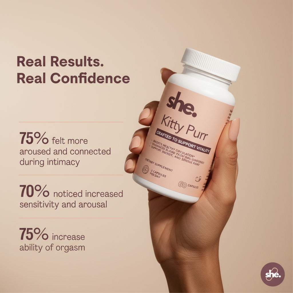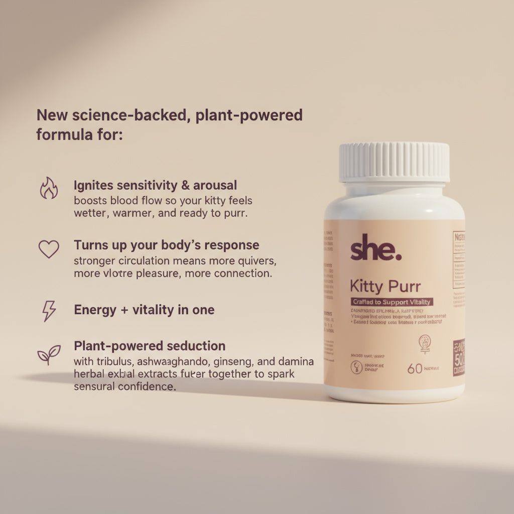 Kitty Purr is a plant-powered supplement designed to support energy, circulation, and feminine vitality. This unique blend helps boost blood flow, increase sensitivity, and promote natural confidence—so you can feel more alive in every way.